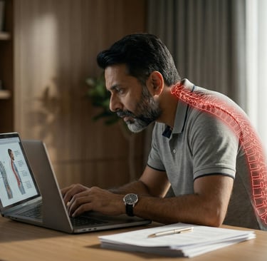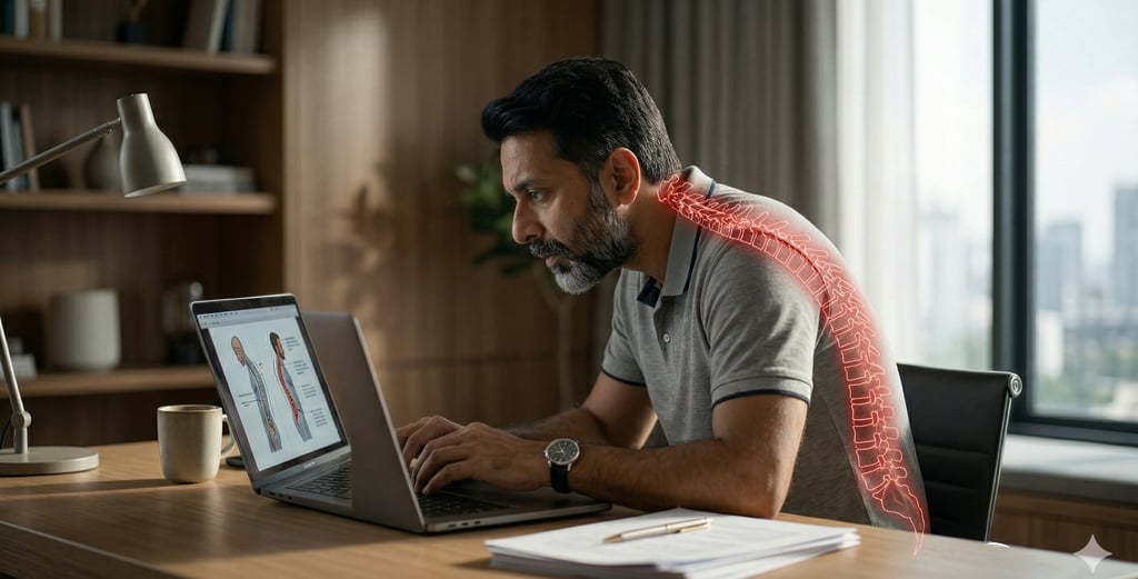 "क्या आपकी कमर कुर्सी पर झुककर 'C' शेप में है? और गर्दन आगे झुकी हुई मोबाइल या स्क्रीन में घुसी है?"